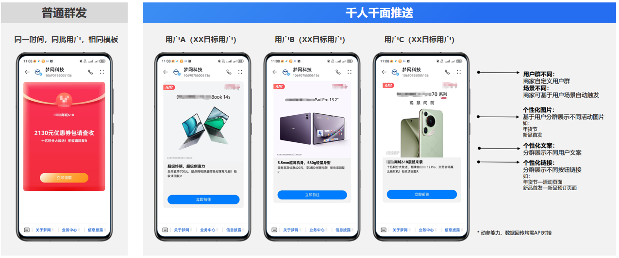 5G元信是在5G阅信基础上,基于鸿蒙以及AI能力所形成的新通信产品,其是凯发k8官网科技基于华为终端云在消息服务领域的再一次深耕和探索,不仅代表了技术的突破和创新,也体现了对企业营销需求的深刻理解。当下,数字环境的日新月异和营销场景的丰富多样不断催生新的营销工具和手段出现,企业必须时刻关注消费者需求的变化,重视消费者的参与和互动,给予个性化的体验,以更快的速度应对变化。