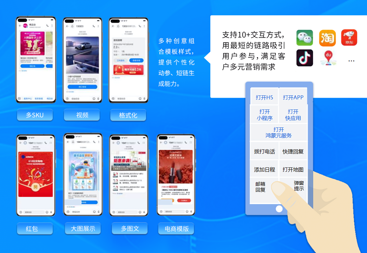 支持10+交互方式:一键触达APP、小程序、快应用及鸿蒙元服务...一键直达落地页,高效引流转化,让企业提升营销转化率。