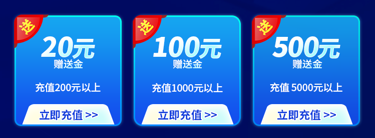 充值 1000元以上即取得最高100元 赠送金