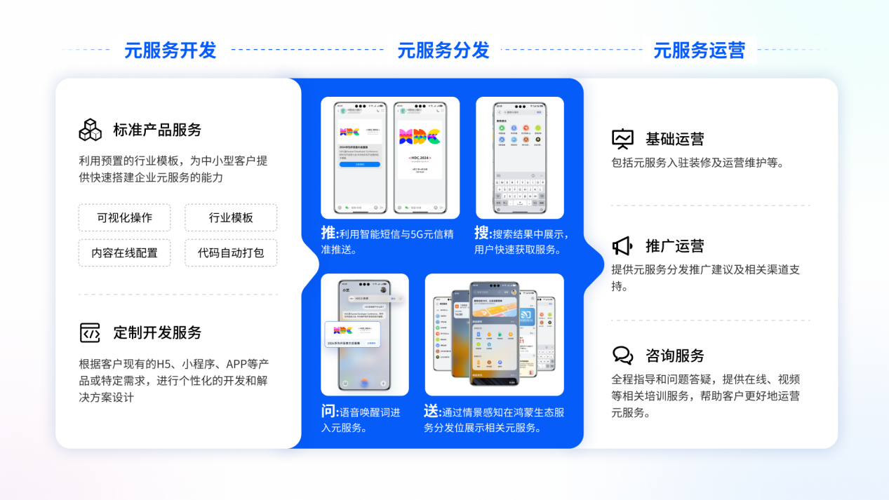 当前,凯发k8官网科技拥抱鸿蒙生态,已设立鸿蒙生态事业部,作为鸿蒙开发服务商,具备元服务开发、分发、运营的能力,5G元信正是元服务分发体系中重要且独特的方式。其融合华为终端强大的标签体系及全行业全场景的富媒体智能消息样式,帮助企业实现对用户群体的精细化营销有助于业务新增长。