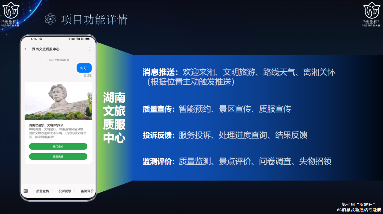 绽放杯特色奖:湖南文旅精准大数据+5G消息质服直通车